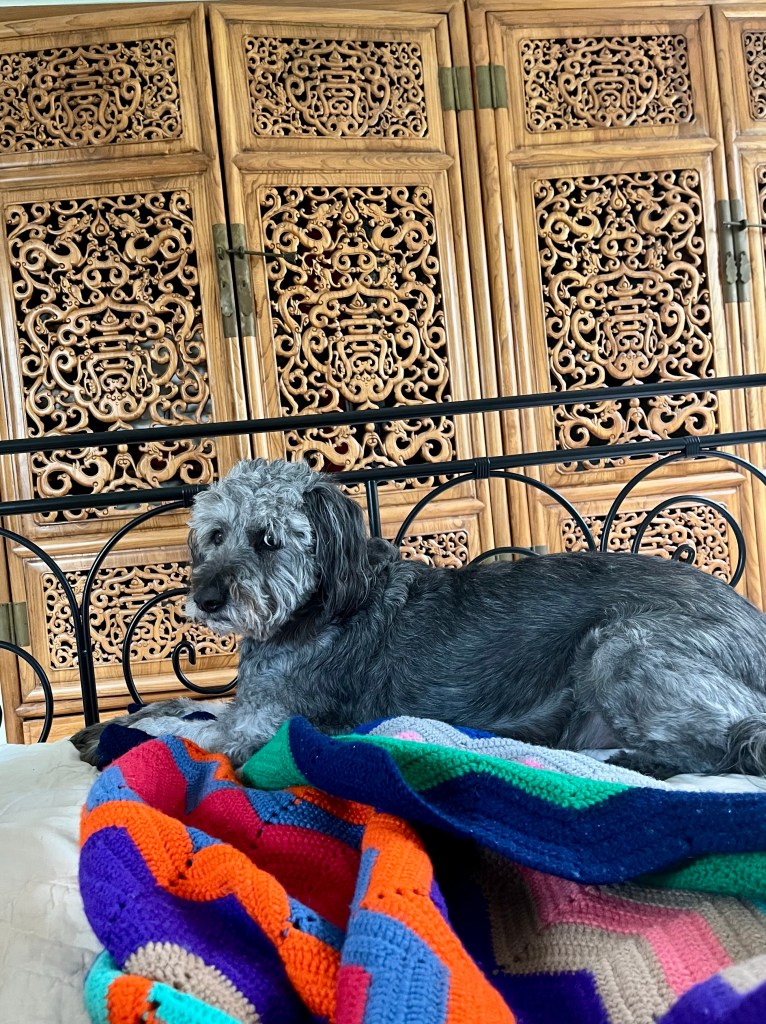 My preferred spot for this activity is down at Ma’s feet on our big blanket.