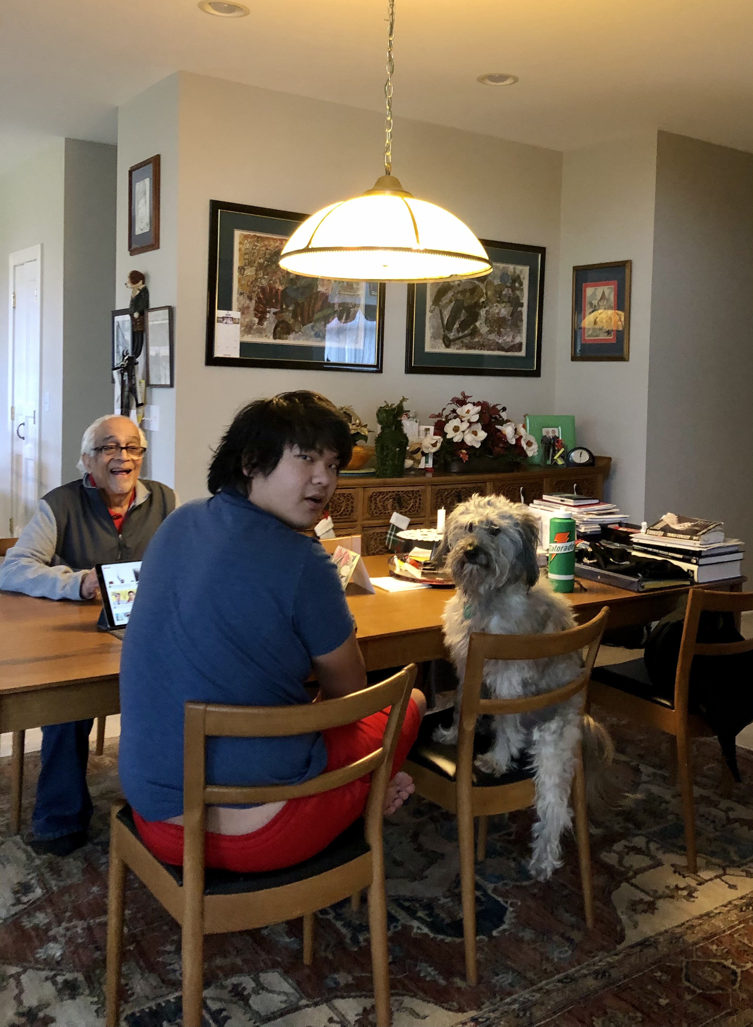 I can’t remember the last day he was at home but today he has a day off.