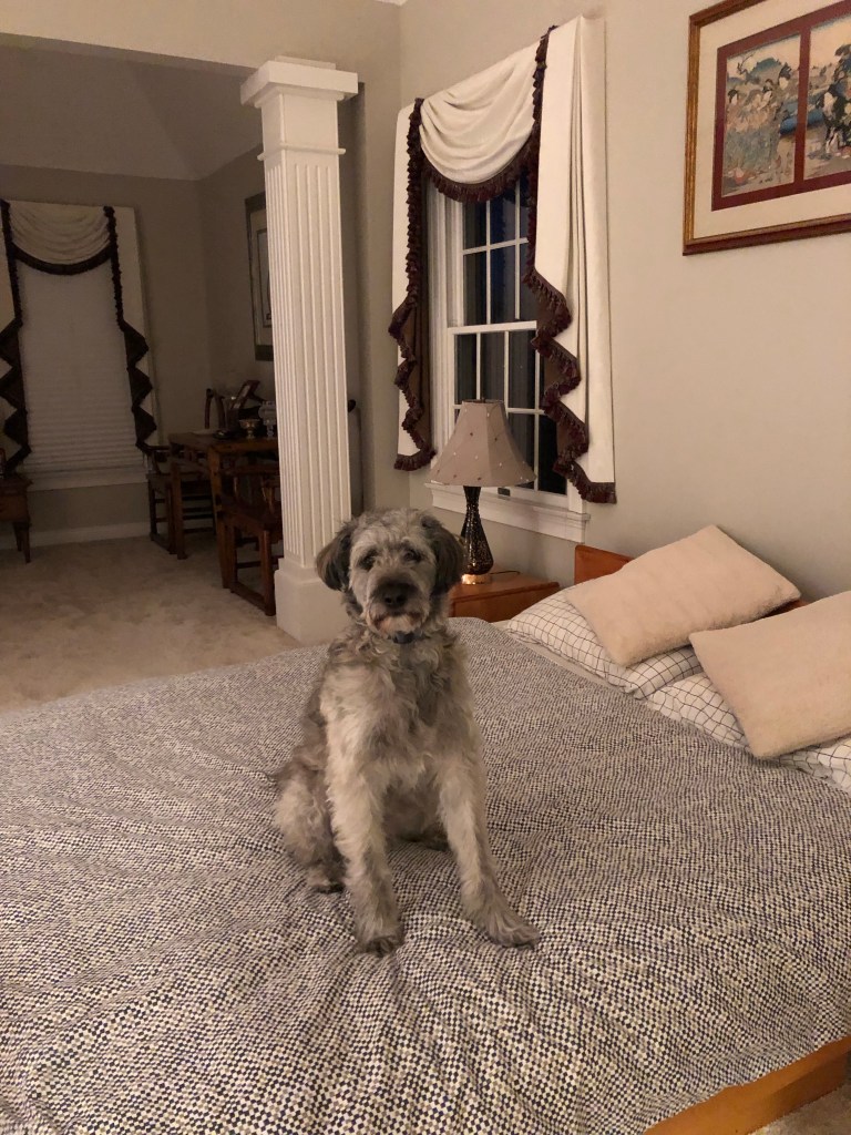 I always sleep with Ma and tend to lie towards the top of the bed which makes me, it would seem, a very important person.