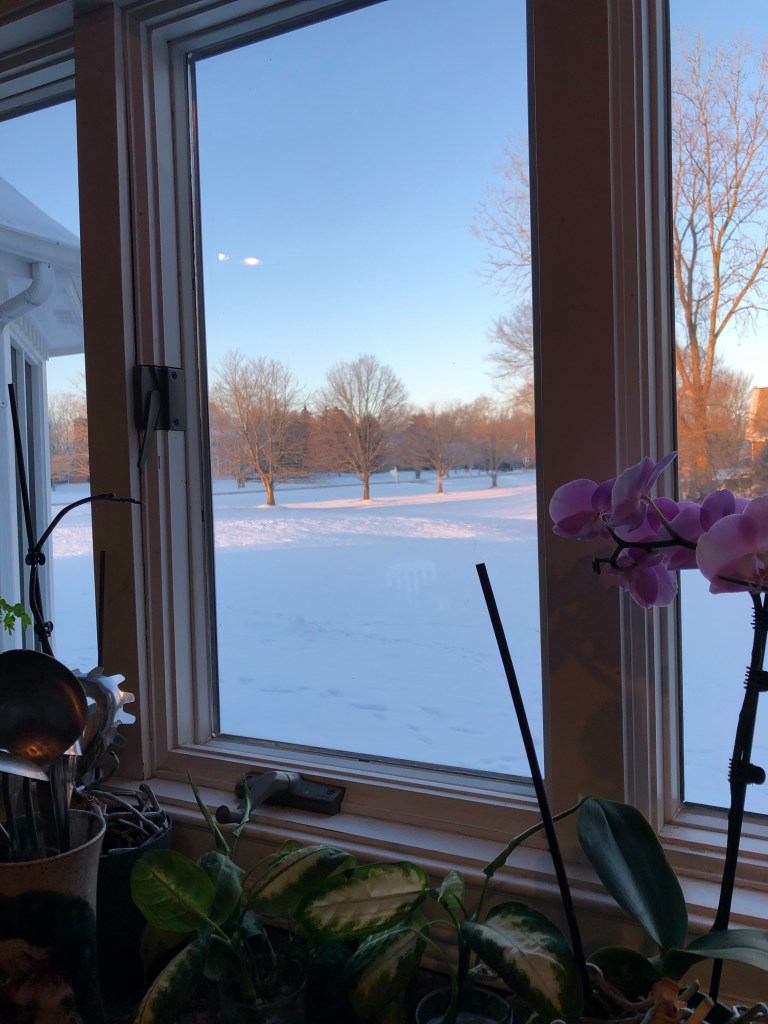 It’s beautiful looking out our kitchen window but it’s a day when you can’t go too far outside as again it is perilously cold.