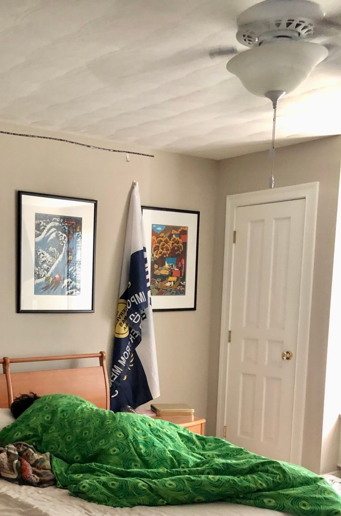 Big ears sleeps with the bro and gets buried under the covers. She emerges from the depths like a whale surfacing for air.