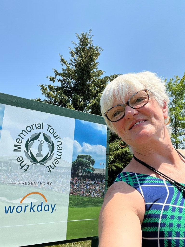 See, since her countryman Rory McIlroy was doing so well at the Memorial Tournament and since we can literally see the airship above the course from our town she said she had to go to cheer him on!