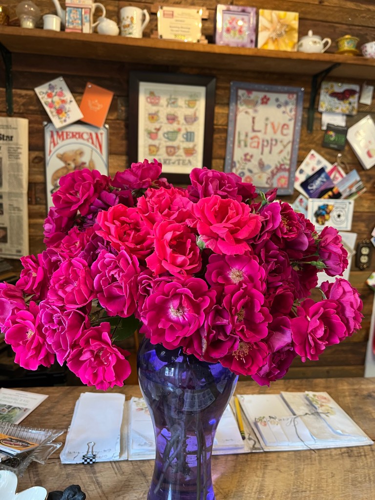 She snagged a pot of « OOPs » paint at Lowe’s. It was good quality outdoor material but clearly not the desired color that someone ordered. It was vibrant pink to put it mildly.