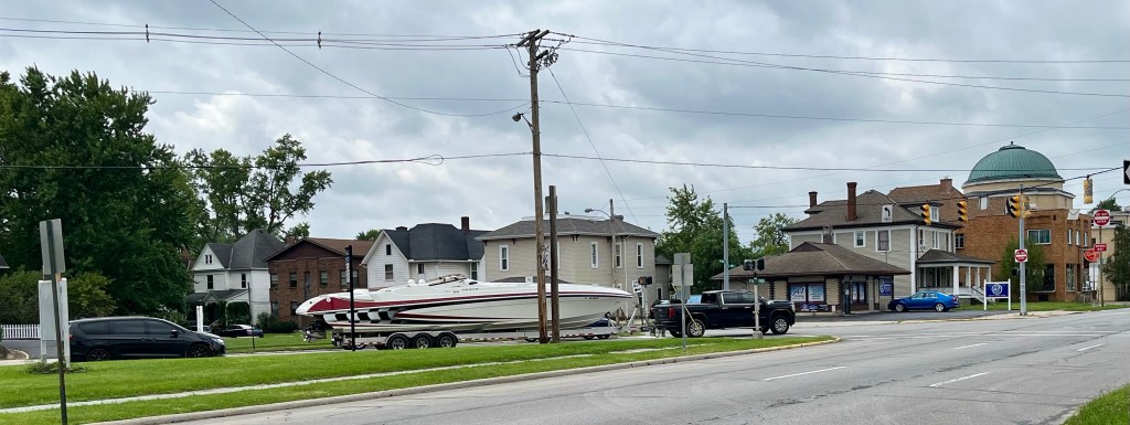 There are very rich people who drive through town towing their boats that are as big as a truck. They’re heading up to the Great Lakes for a spin on the surf.