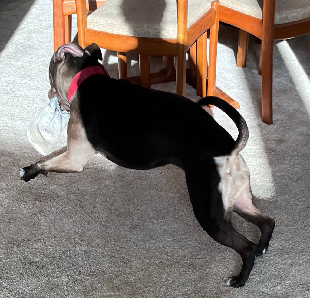Yesterday I got one of her trainers. Grandpa was apoplectic. Granny just said “oh let her have it they have hole in the soles anyway”
