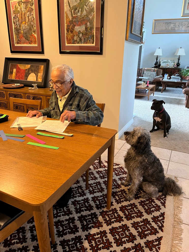 Dad is doing it with my help. I’m keeping trouble at bay.