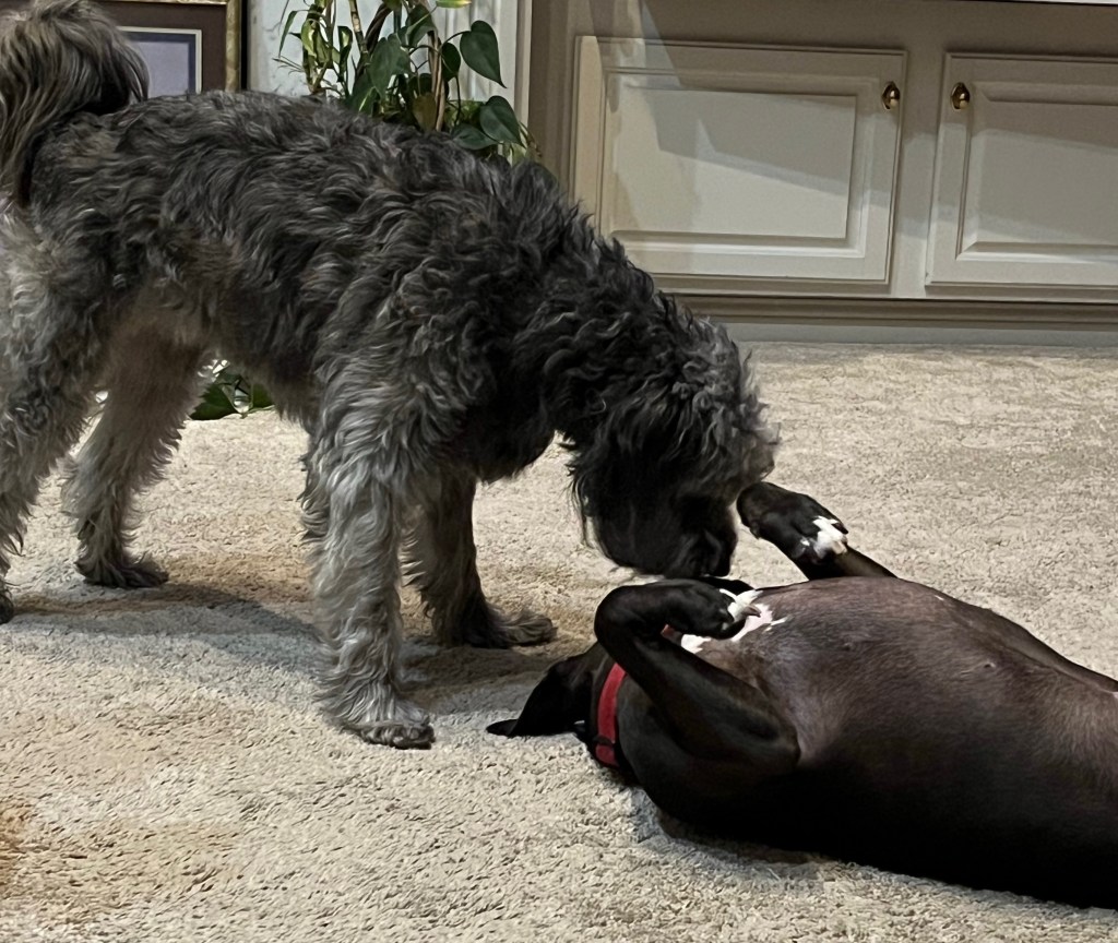 When I come home I’m all fired up so I chase the Grey Gizz too. He’s not nearly as fun but I love winding him up!