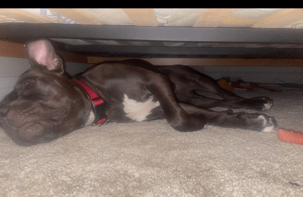 Dad captured my condition perfectly last evening in my favorite place of repose underneath his bed.