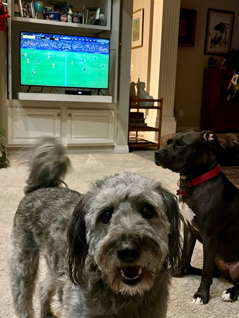 When there is a big cheer on the TV she thinks it’s for her and takes off on a victory lap around the dining room at lightening speed!