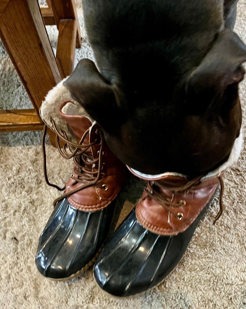 Yesterday when Granny took off her boots I gave them a great big sniff just to make sure that when Santa comes I don’t mistake hers for his and have a nibble at them.