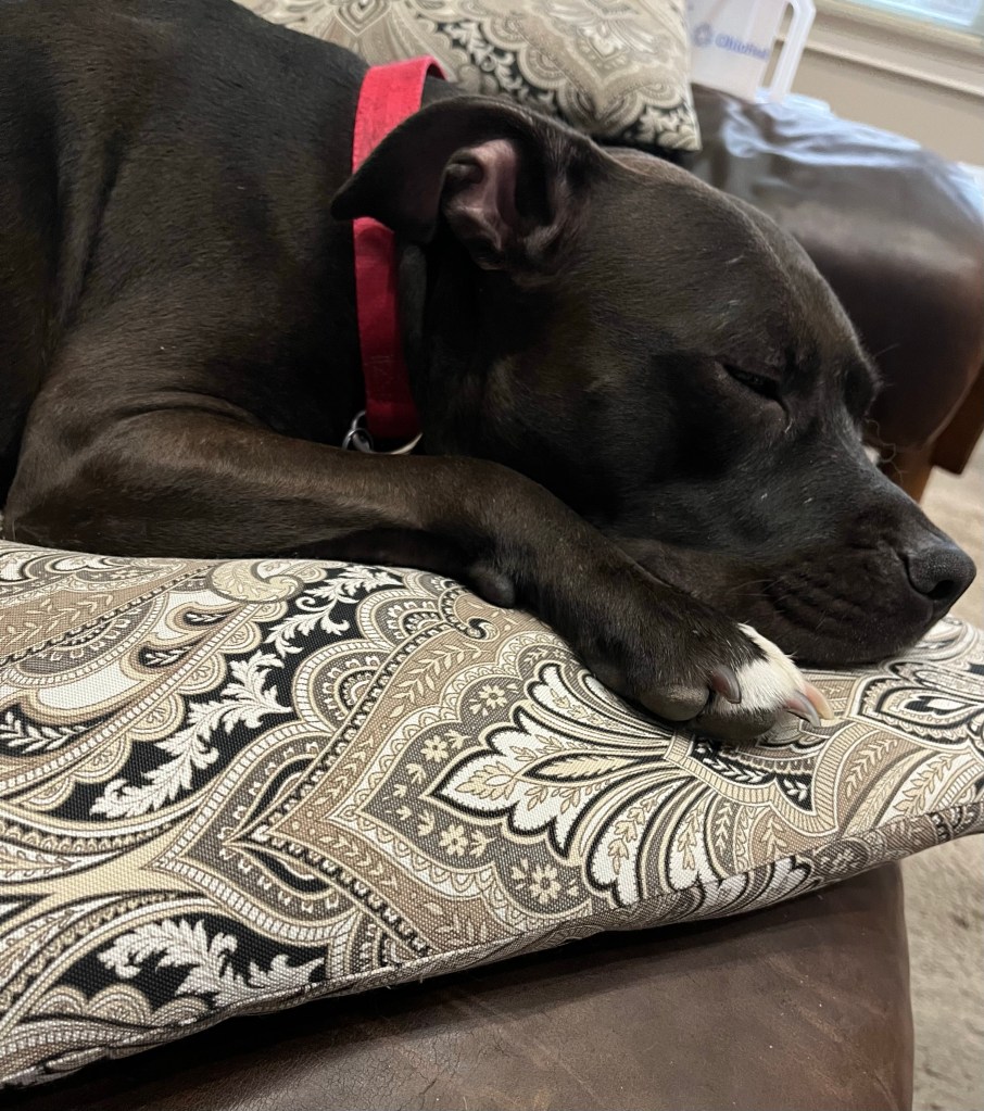 Please pray that Scooby is soon run over by a large vehicle and quickly replaced by a frisky fellow to keep me on my pointy pitty toes.