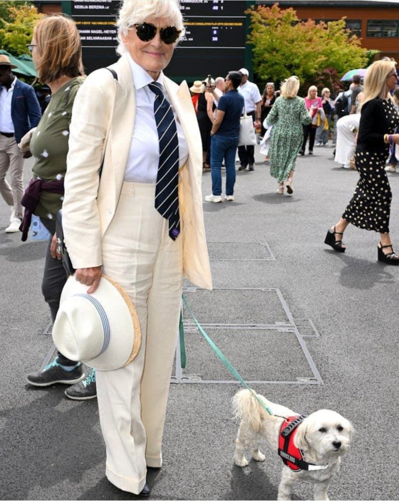No dear reader this is NOT Mom with a tiny pooch this is Glenn Close the actress at Wimbledon.