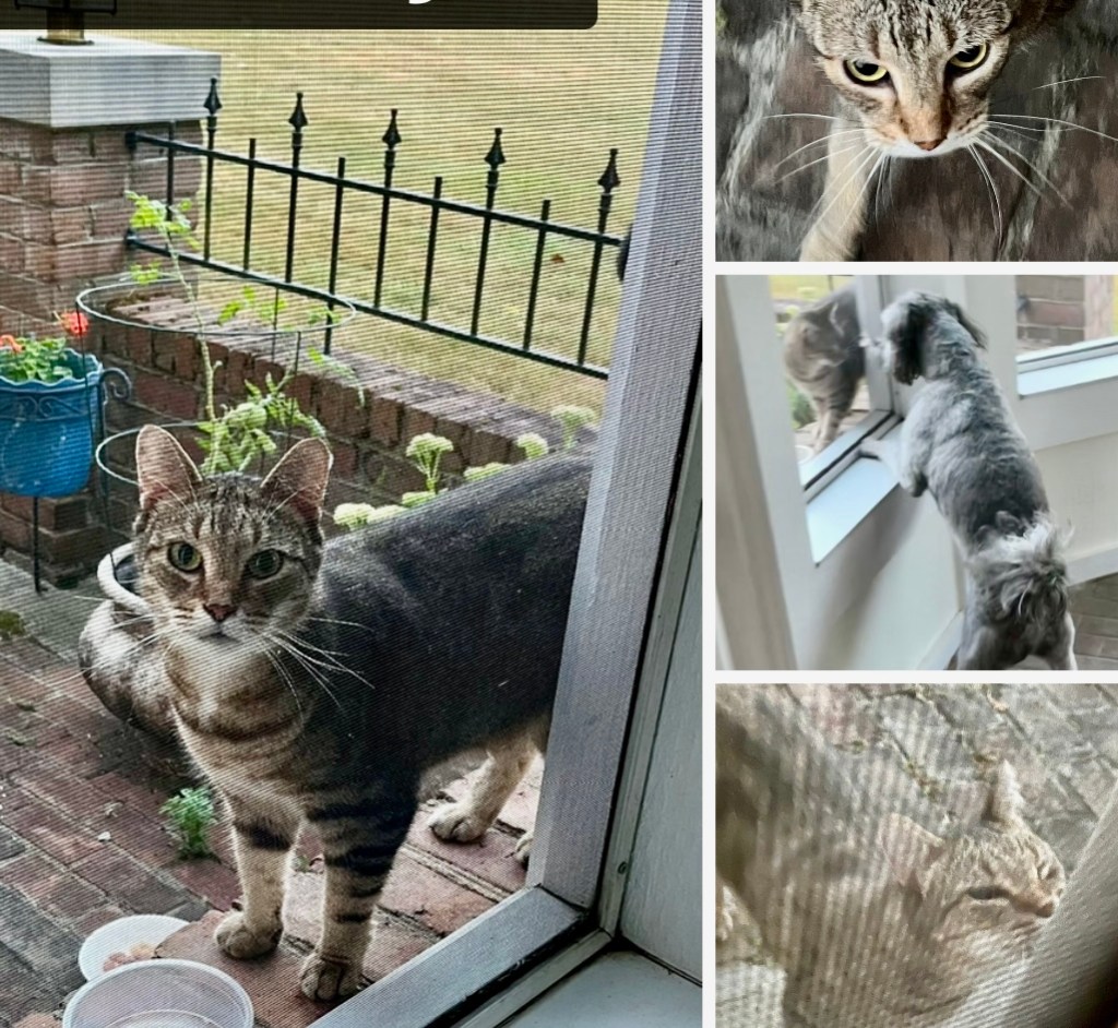 The stray kitty that has been sighted at various homes in our neighborhood found us.
