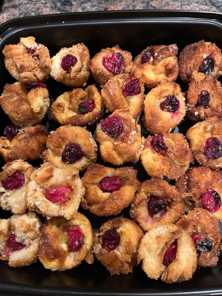 We made mini bread puddings. Finger food!