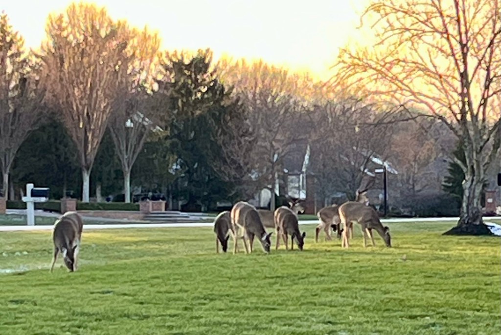 See twelve deer ran across our yard just as we were ending our morning trot.