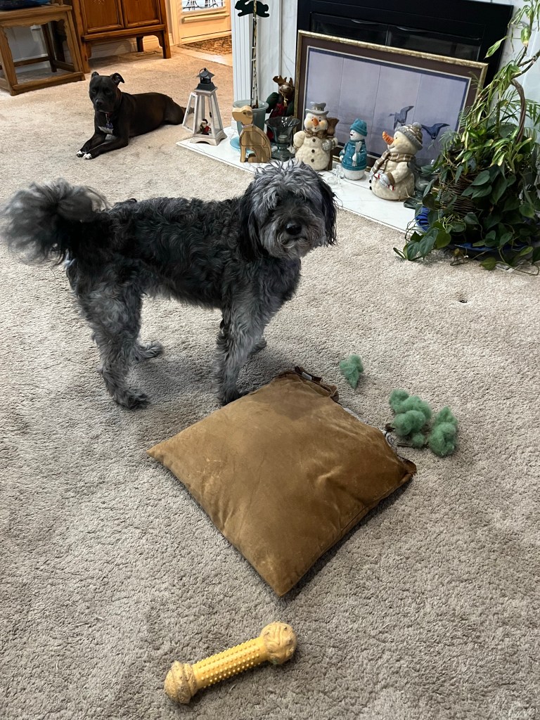 It was therefore an ideal time for Jaws to crack on and chew up yet another pillow.