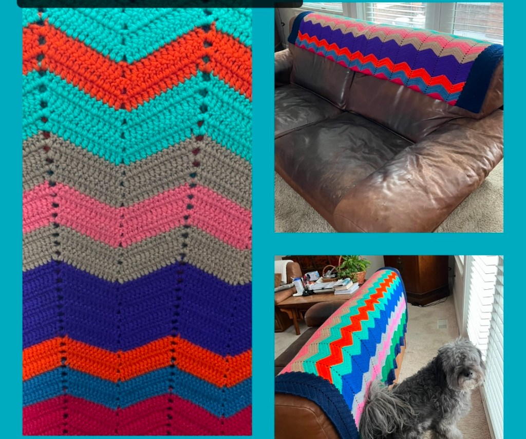 It’s a gigantic Afghan blanket. Weighs exactly five pounds, that’s a lot of wool, is all hand done and never used.
