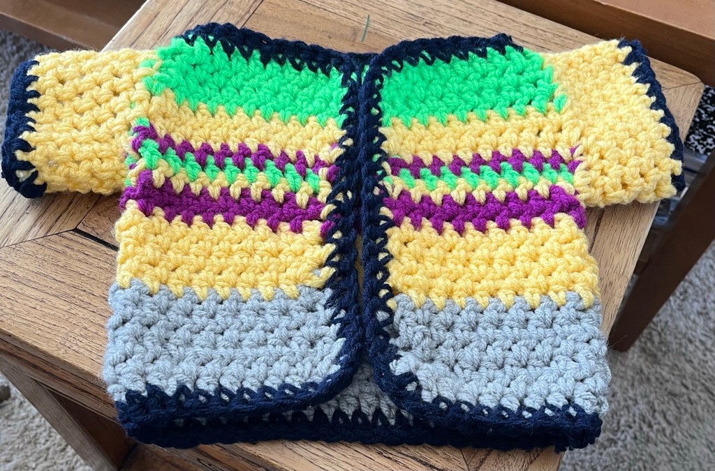 It’s a sort of sweater but this time for a baby. I think it’s the best outcome to date.