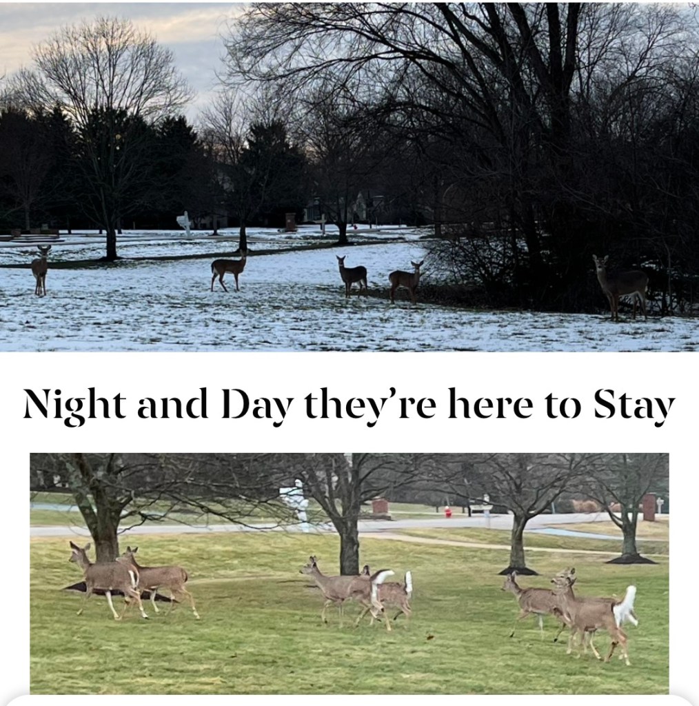 Evening eating is usually around 5:00 pm so Ma sometimes catches them in the act when she swings into the driveway.