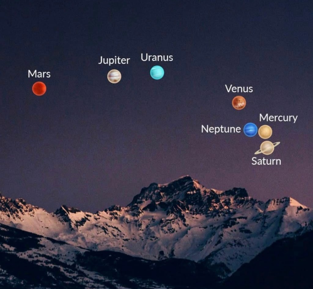 Well as directed by the experts we looked heavenwards just after the sun set but we couldn’t see the moon let alone the aligned planets as there was so much cloud cover.