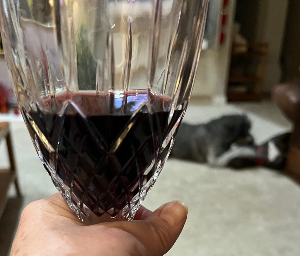 She was given a half bottle of good cabernet to sip while she watched.