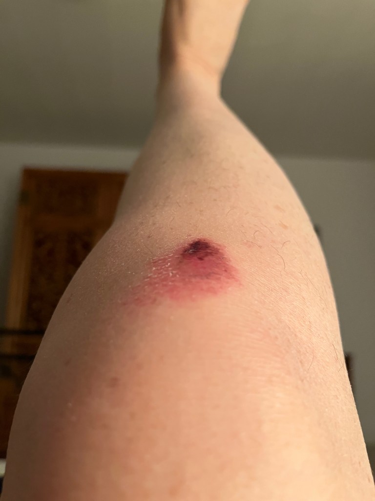 Apart from uttering a few obscenities and having a bloody knee she was unharmed which is just as well as we were a mile and a half from home.