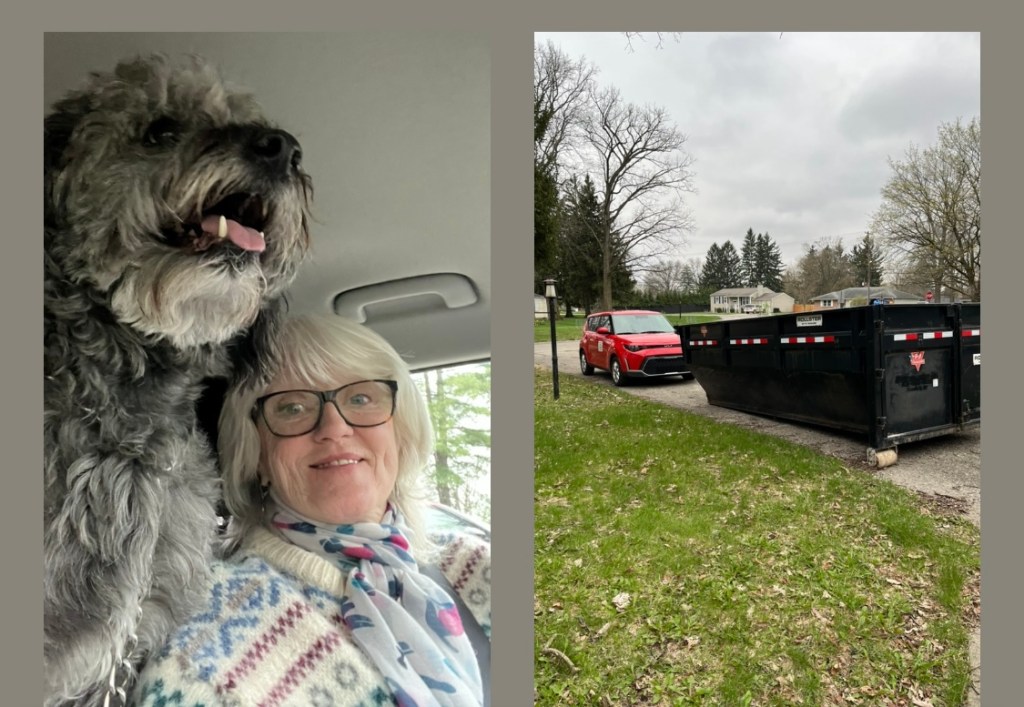 We discovered to our delight that the dumpster had already been delivered for the rip out of the stinky carpets and bathrooms.
