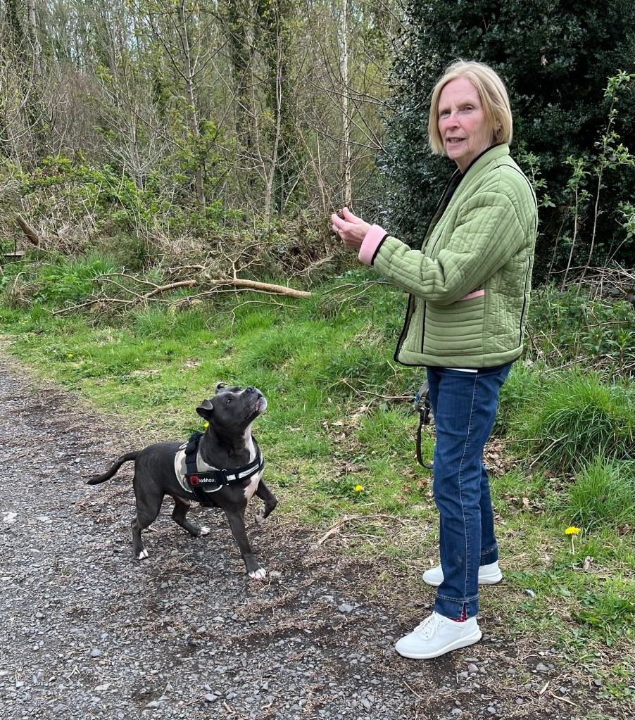 She is currently cavorting around the countryside with a Staffordshire Terrier who goes by the name of CLYDE.