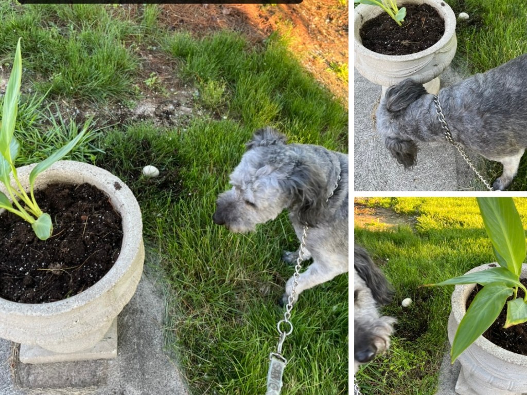 When Ma came home from work on Saturday one of our big stone planters had been tipped over.