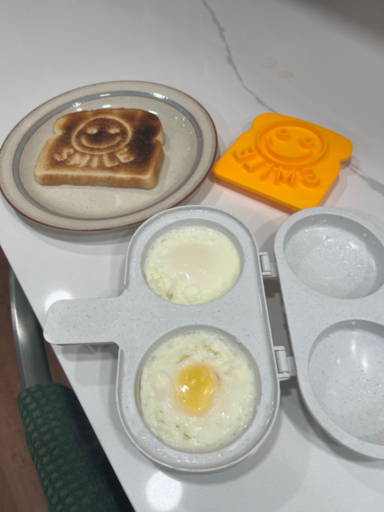 So it is that these past days Ma has been having poached eggs regularly on smilie toast.