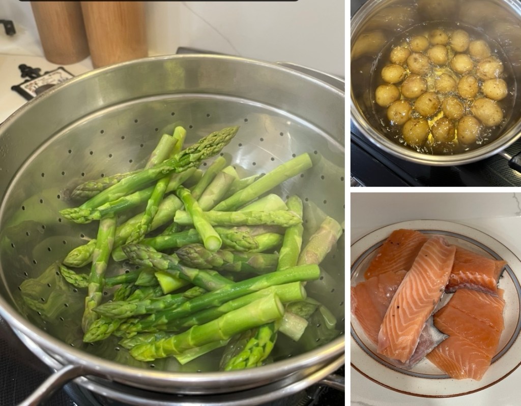 Ma cooked it up yesterday with some new potatoes and salmon. It smelled so good.
