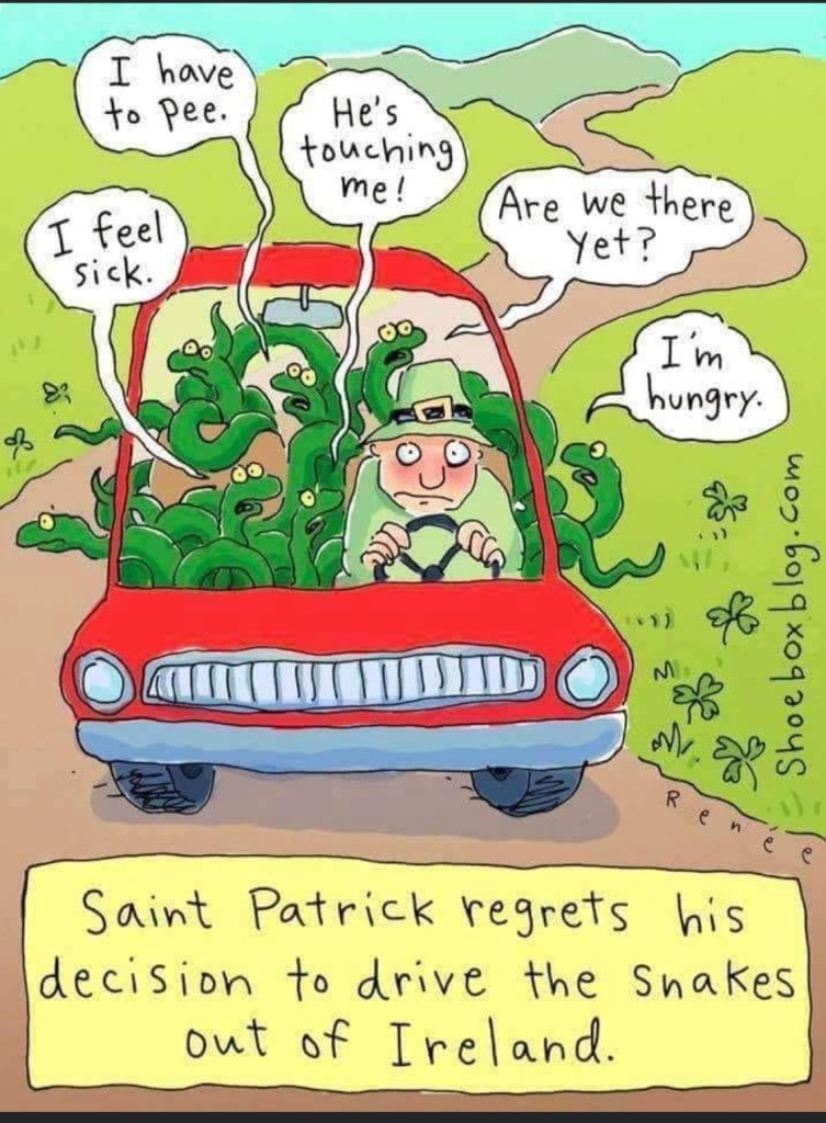 The bold Saint Patrick is meant to turn the sunny side up. Well there is a gale going on outside since two o’clock. Maybe the sun will blow in later. Wee bit blustery right now!