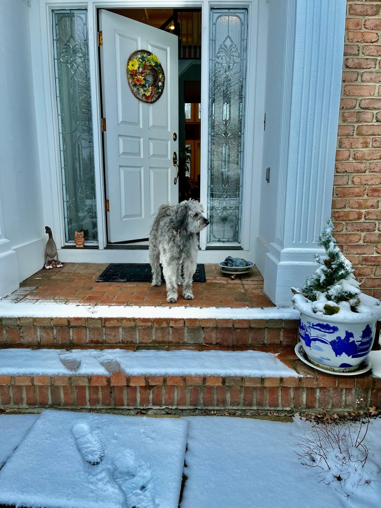 We got a little bit of a surprise yesterday morning. It had snowed overnight. I stuck my nose out and declared it festive.