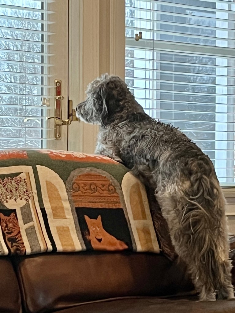 Granny, as usual, ignored my scratching until SHE was caffeinated and ready to go out to meet Auntie Denise for our trot.