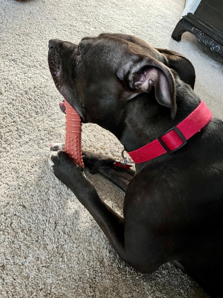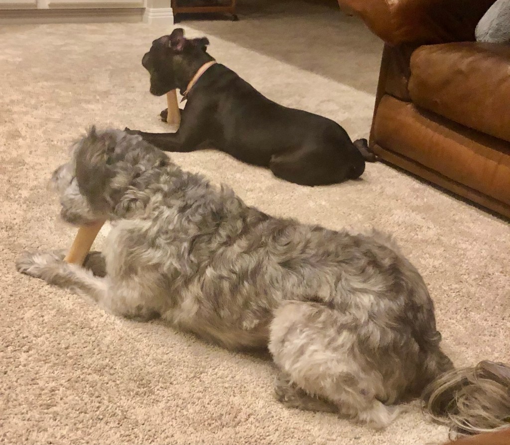 He gave us our goodies and I got to chew the new for a while before we adjourned to bed.