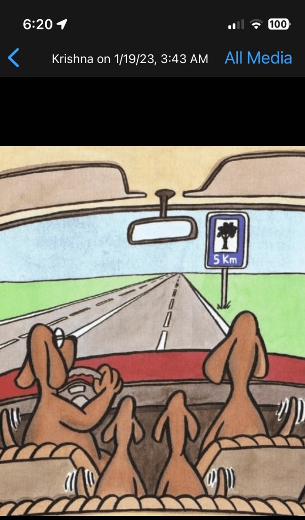 Cousin Krishna sends us jokes every day to get me in a good mood. It helps me deal with trouble that currently is slumbering sweetly in another room.