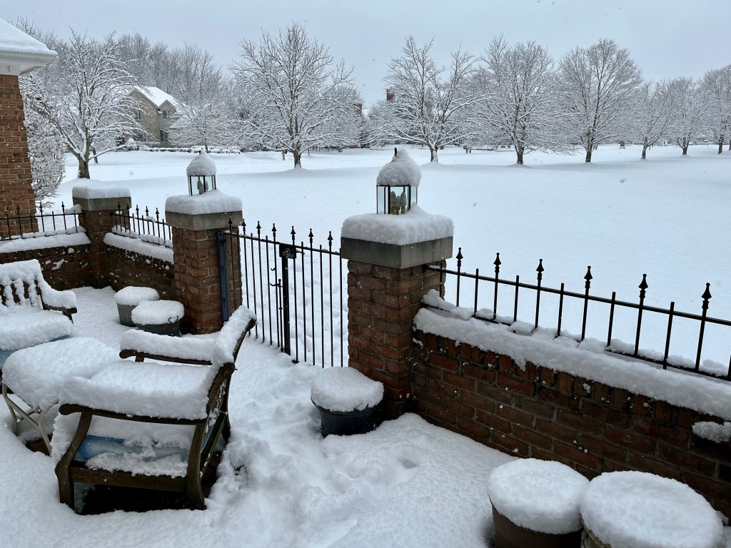 A Level 2 snow emergency has been issued for our area which means don’t go on the roads unless you absolutely have to.