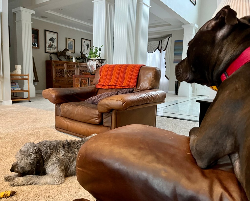 You wait and wait and wait and wonder and wonder and wonder will they come back soon. You listen for the car and the garage door opening and then you wait some more. Soon it’s time to check out the bedroom just in case they sneaked in a different door. No they didn’t so back to lookout position number one.