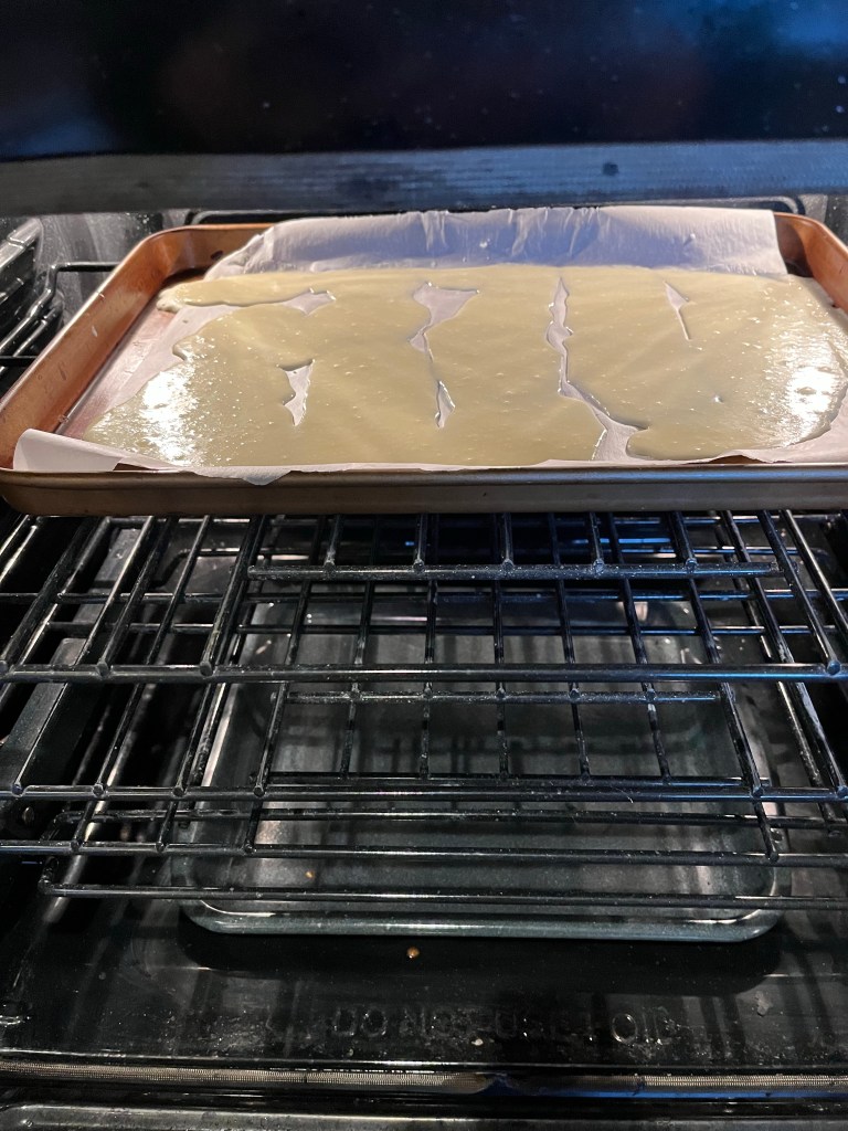 The structureless souls were no sooner in the oven than they spread like soup all over the baking sheet.