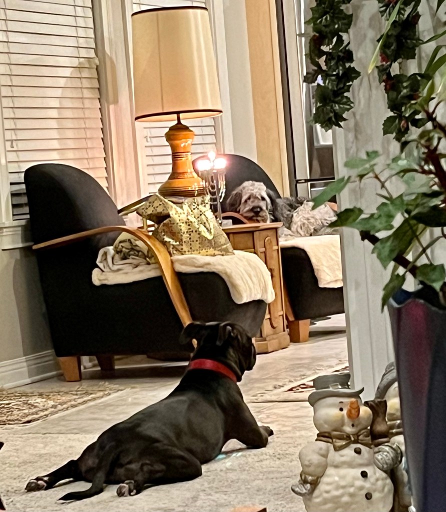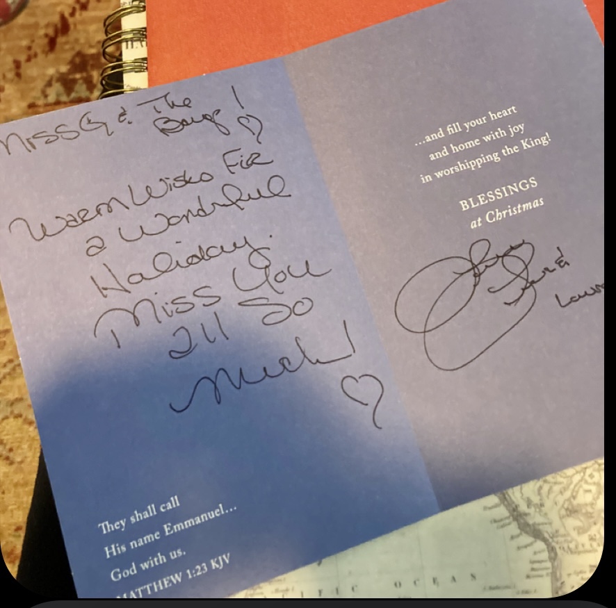 After the second ding ding Laura answers and here’s the funny thing at that very moment Laura was writing a Christmas card to us!