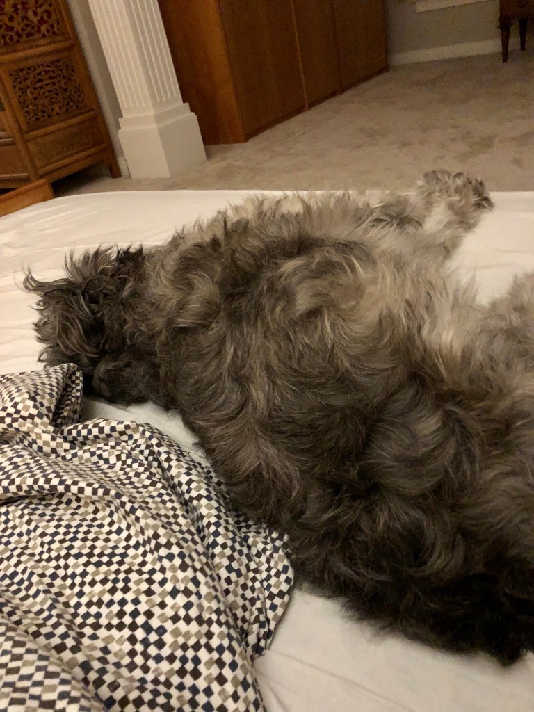 My normal groomer is booked out till end September so that wouldn’t help me so the bro found a solution at one of those pet chain stores that offers beautification.