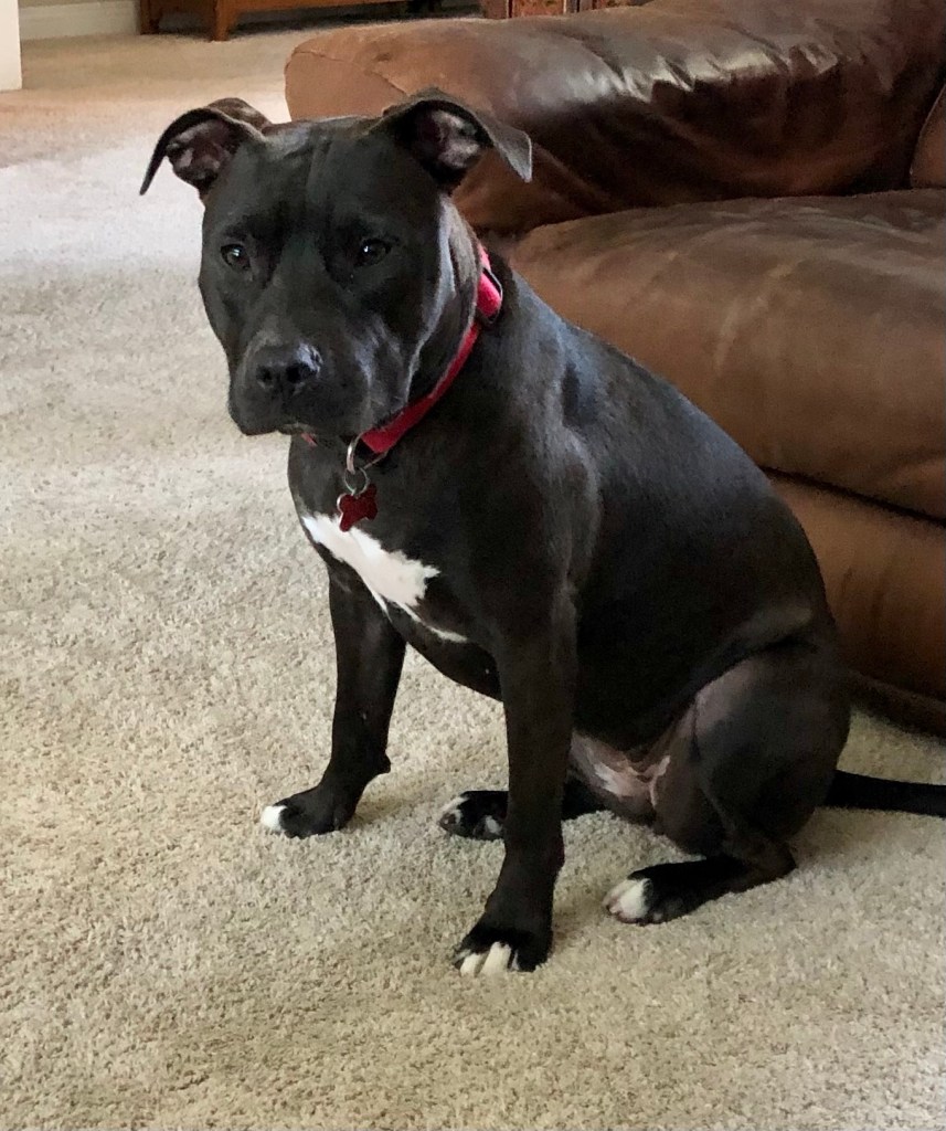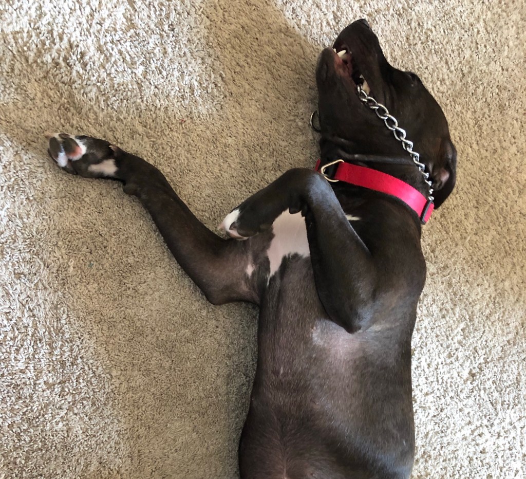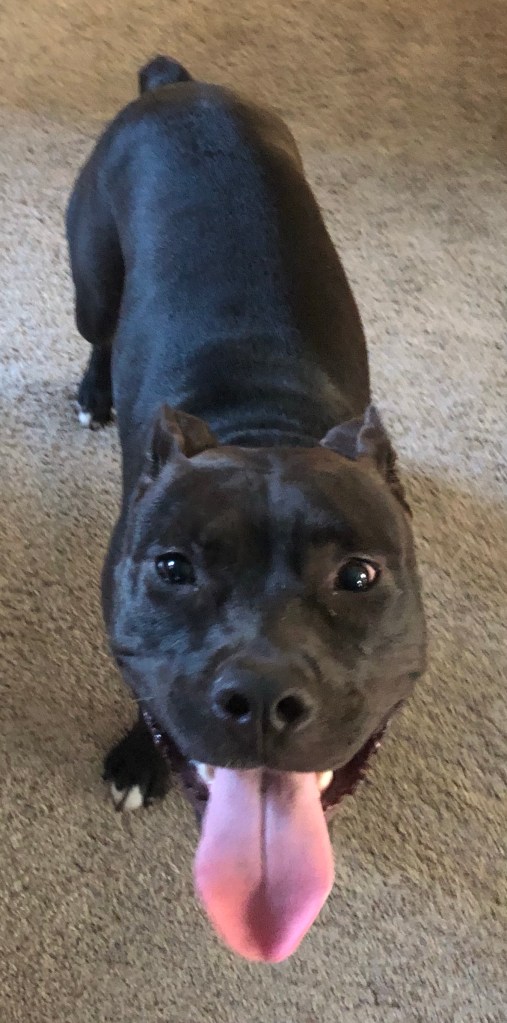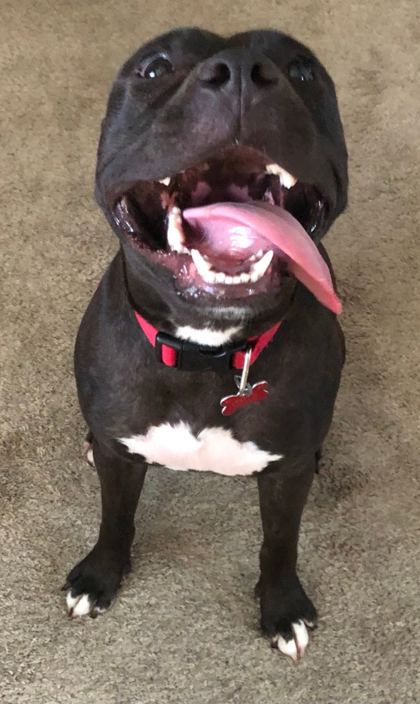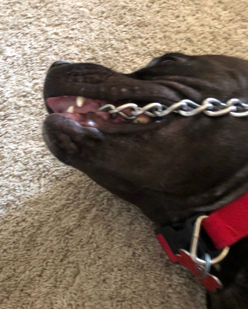 PIT has jaws of steel so I keep telling Ma not to let her chew her choker for too long but she doesn’t listen. Just breaks into song which I don’t understand.