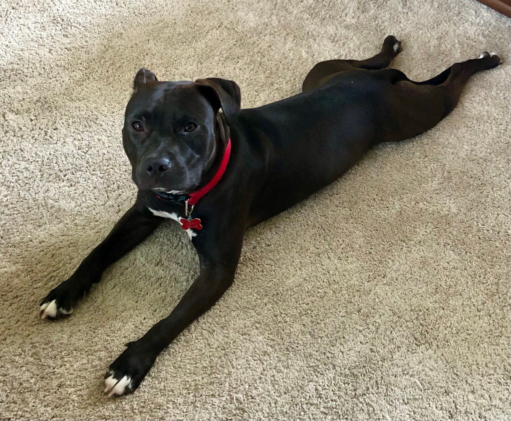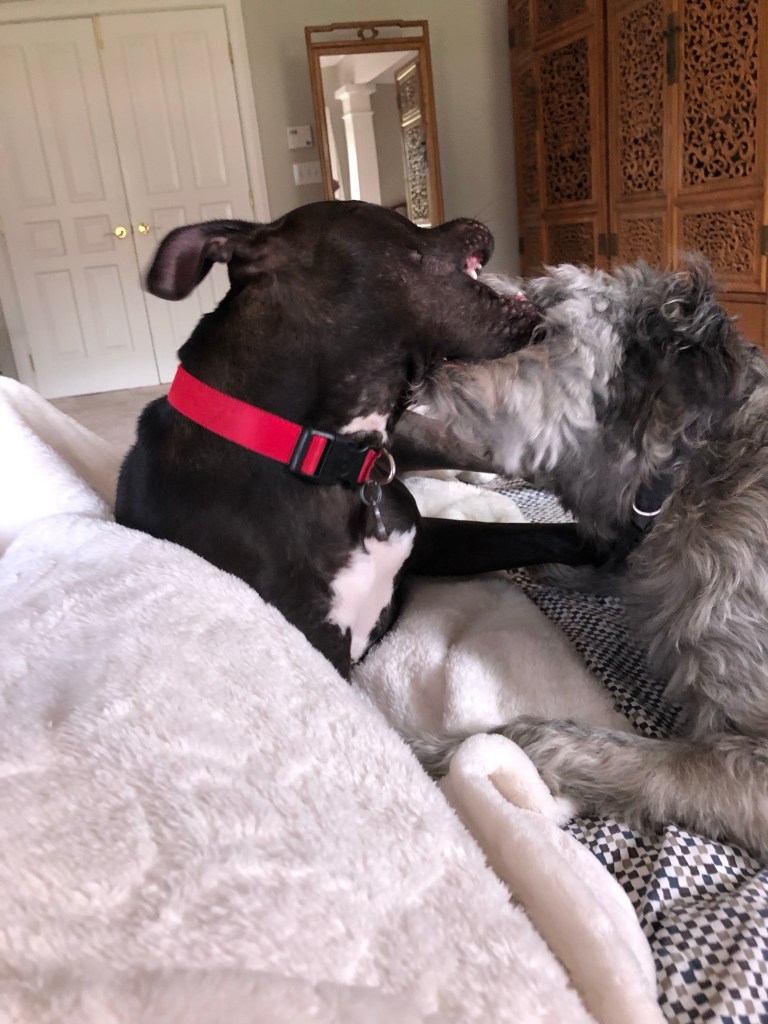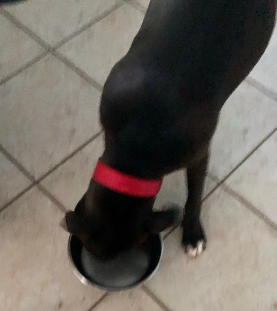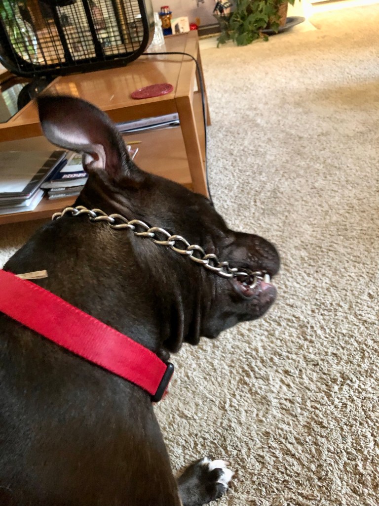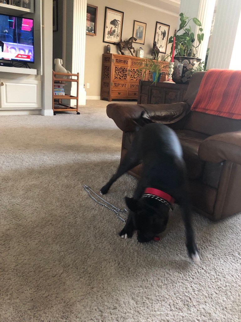 PIT has jaws of steel so I keep telling Ma not to let her chew her choker for too long but she doesn’t listen. Just breaks into song which I don’t understand.