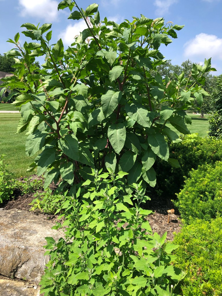 The only thing that has reached that height is the poke weed Ma is cultivating in our yard for the blue birds. It’s huge! That great tree like arbuste is all this seasons growth!!!!