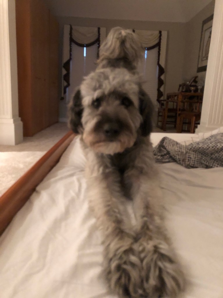 The bro and Mega have moved to the basement which may explain why she still has some energy but I have to take care of the aged Ps so I’m baking on the first floor with them.