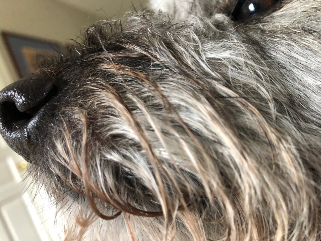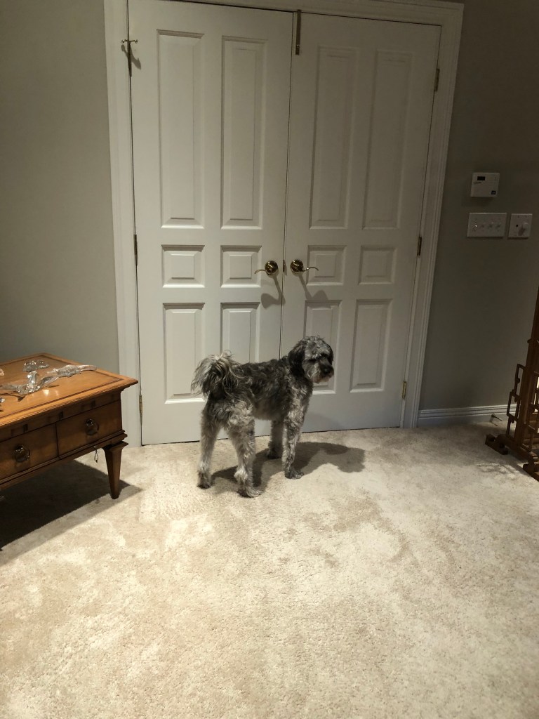 He has also become extremely stinky in this climatic challenge. That coat is just odoriferously overwhelming. Worse than Granny’s feet! Do not plan to visit us until we have scheduled Stanley Steamer.