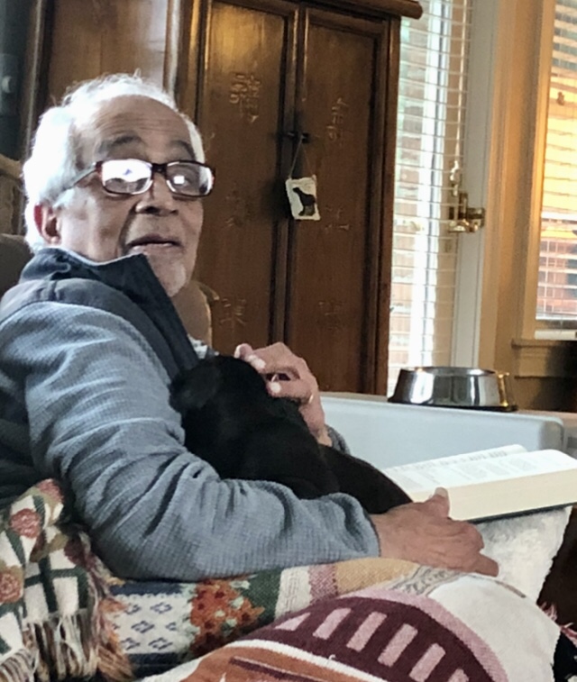 A devotee of the Oreo and Custard Cream cookie he generously shares the same with me each morning. He also keeps me pieces from his dinner plate each evening and chops them into tiny pieces to delight my palate.