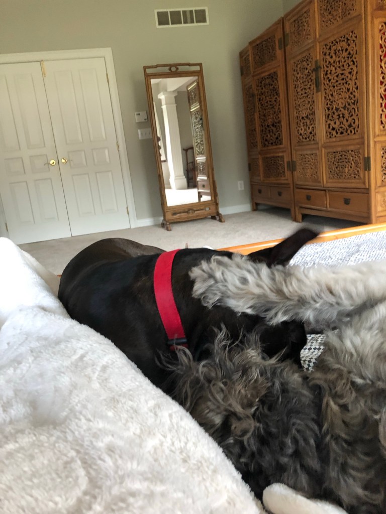 It’s been three weeks since I’ve been able to go to work with Mom because it’s too hot for me to stay in the car. Instead I have to suffocate at home with Dad and Mega.