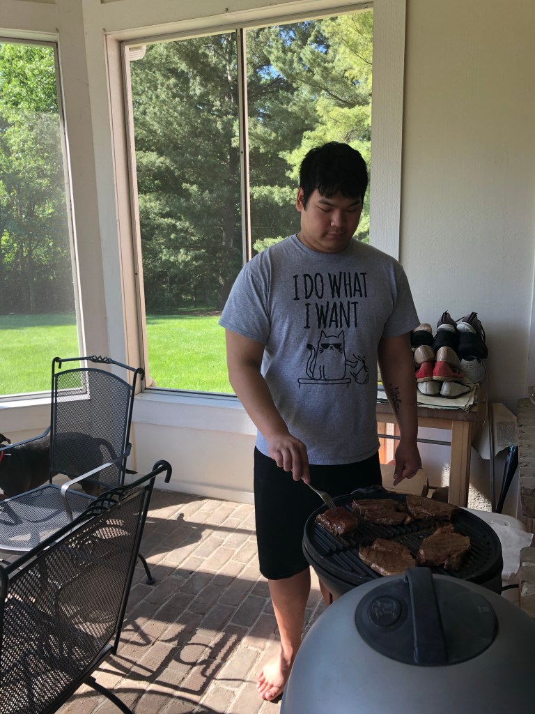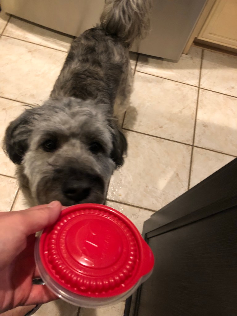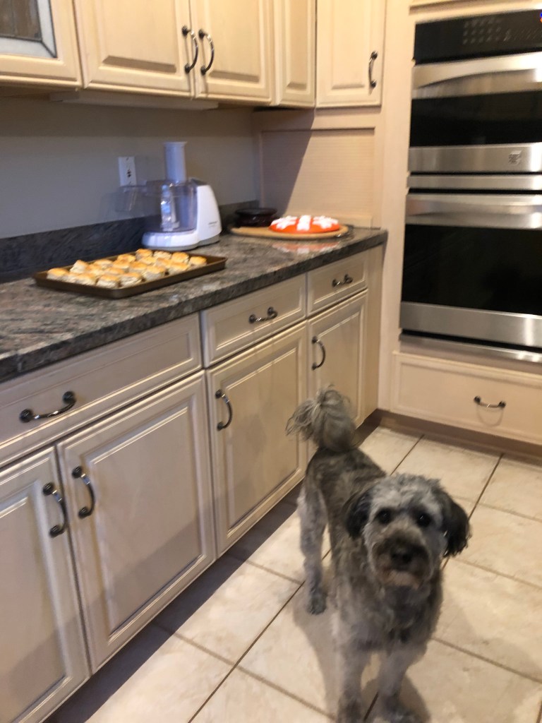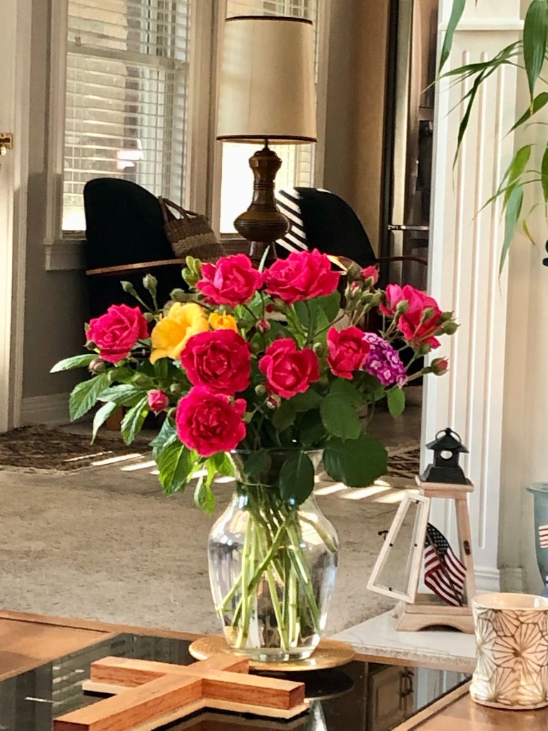 Ma brought flowers and treats home.