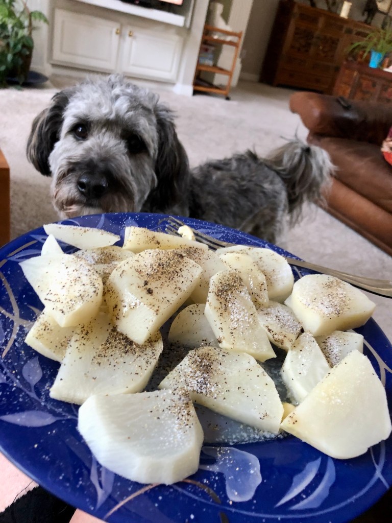 Granny celebrated by eating a plateful of turnips.